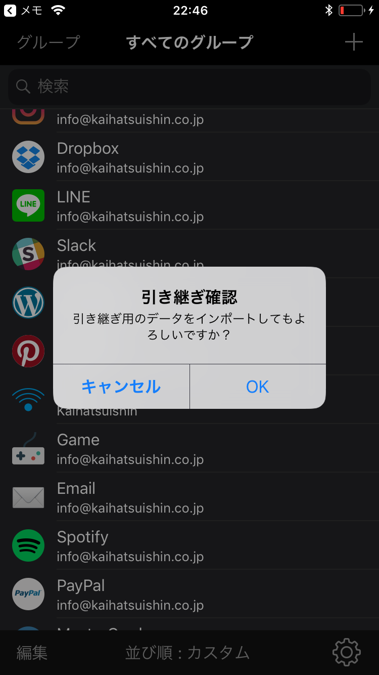 初代Easy Passからのデータ引き継ぎ方法 データ引き継ぎ方法 バックアップのエクスポート初代Easy Passの設定画面でバックアップをエクスポートします。 Easy Pass2を選択します。 ログイン後に引き継ぎ確認アラートが表示されるのでOKをタップするとデータが引き継ぎされます。 Newer Easy Pass2 ログインパスワードの設定 Older Easy Pass2 Support